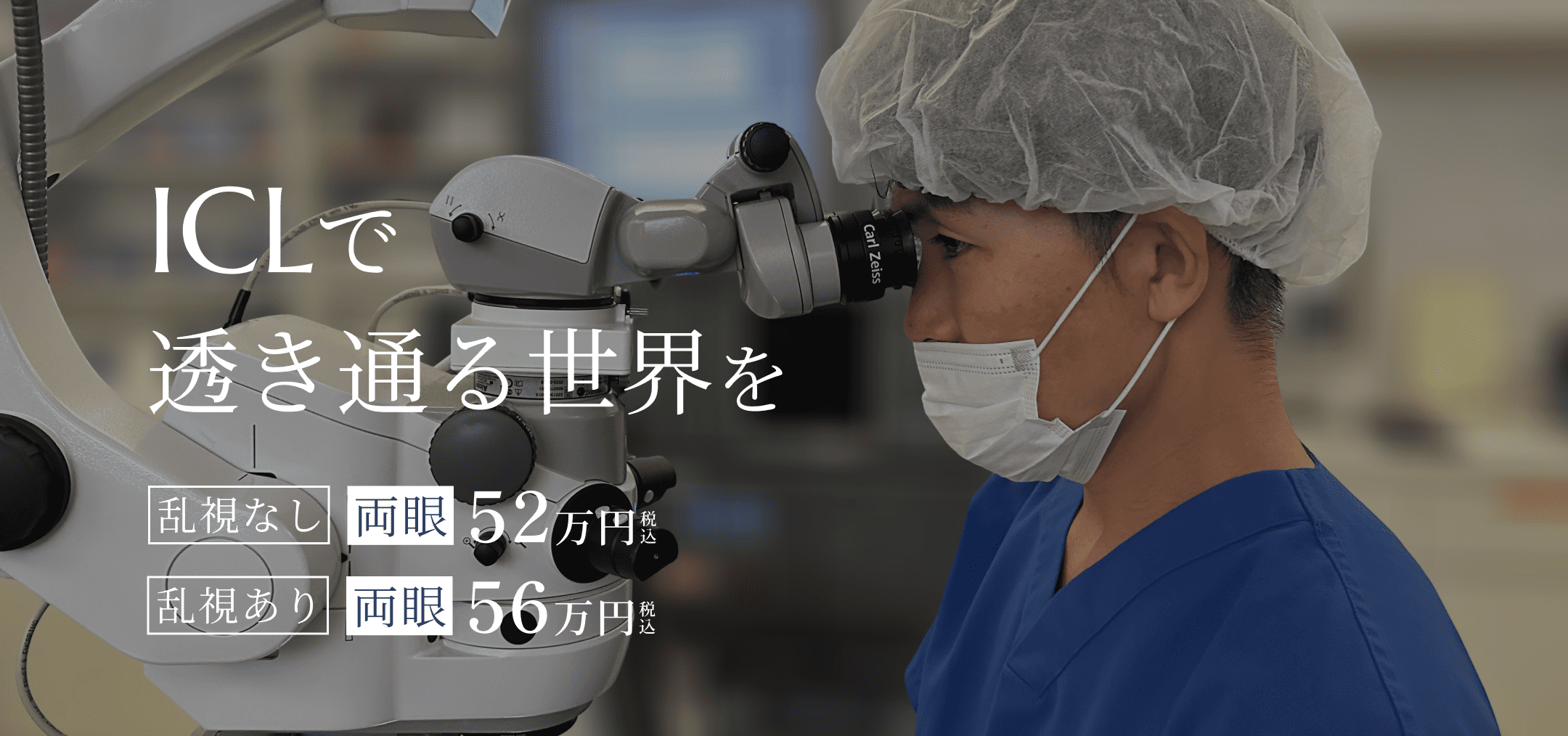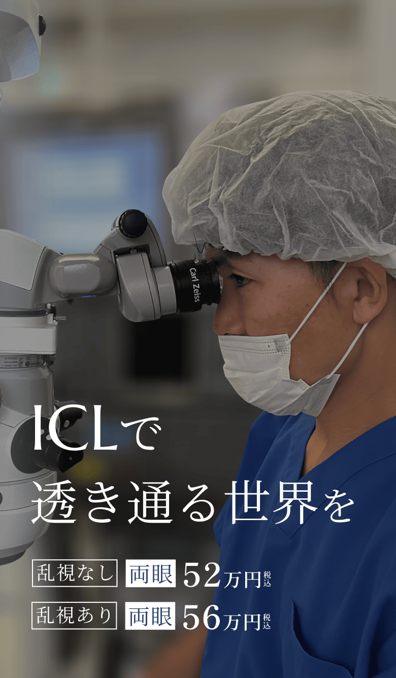 また、コンタクトレンズは⾓膜や結膜を傷つけることがあり、まれに感染症を起こす可能性もあります。⼀⽅、 ICL は⾓膜に触れないため、 涙の流れや酸素の通り道を妨げず、 ⽬への負担が少ない視⼒矯正⽅法です。