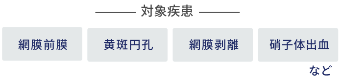 ※患者様の疾患や症状によっては、レーザー治療を行なったり、ガスやシリコンオイルを置換したりすることがあります。